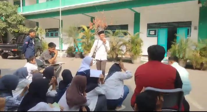 Sirene meraung-raung, pembelajaranpun pecah. Warga madrasah dalam kegentingan. Siswa-siswi sibuk mencari aman. Ada yang lari ada pula yang bertahan di bawah meja dan mencari area yang aman. Tak lama aba-aba guru meminta siswa tenang dan bergegas meninggalkan kelas menuju halaman yang lapang.