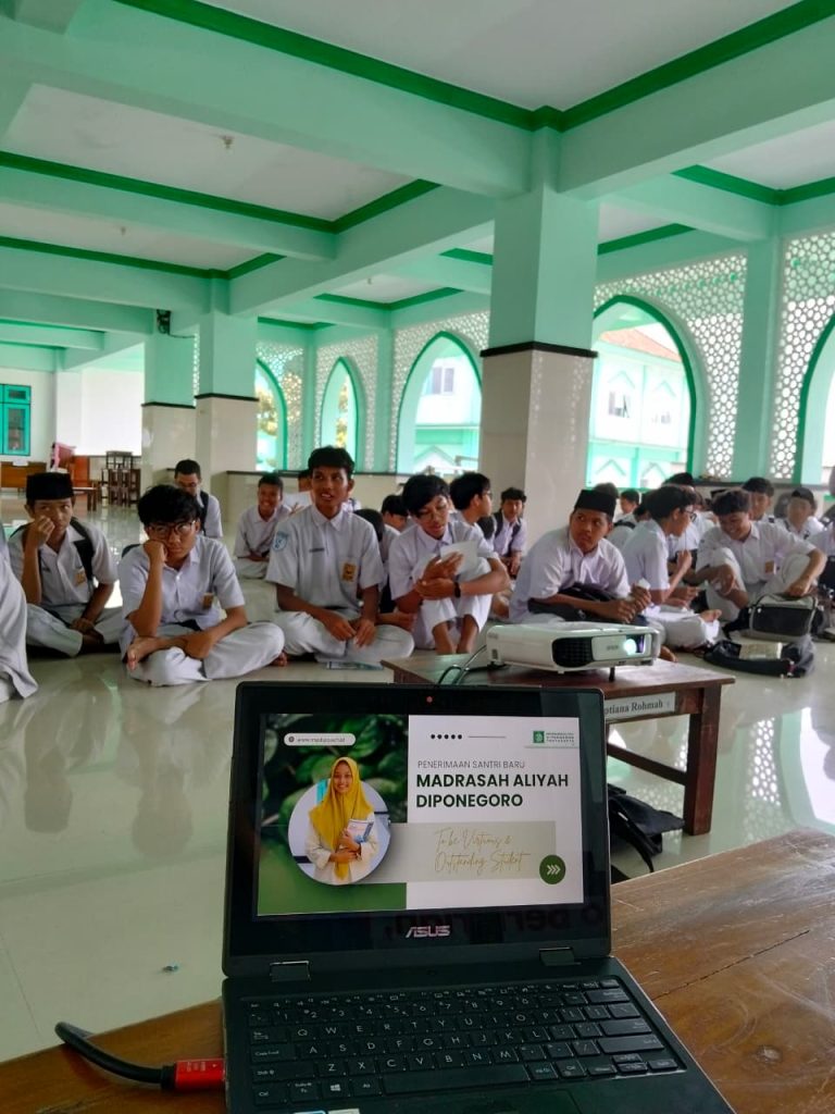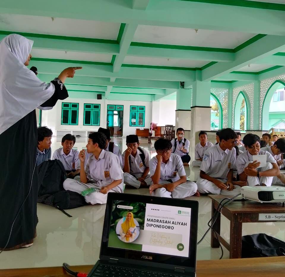Yogyakarta, 15 Desember 2025 – Madrasah Aliyah Diponegoro Yogyakarta (MADIPO) menggelar sosialisasi Penerimaan Siswa Baru (PSB) bagi 156 siswa kelas IX SMP Diponegoro, Senin (15/12/2025). Kegiatan ini memperkenalkan program dan keunggulan MADIPO sekaligus menghadirkan tiga alumni—Ihsan Musaffa (UGM), Ftirin Nafingah (UNY), dan Hubiba Mayang Mahamida (UPN Veteran Yogyakarta)—sebagai inspirasi nyata bagi para peserta untuk melanjutkan studi ke jenjang yang lebih tinggi.