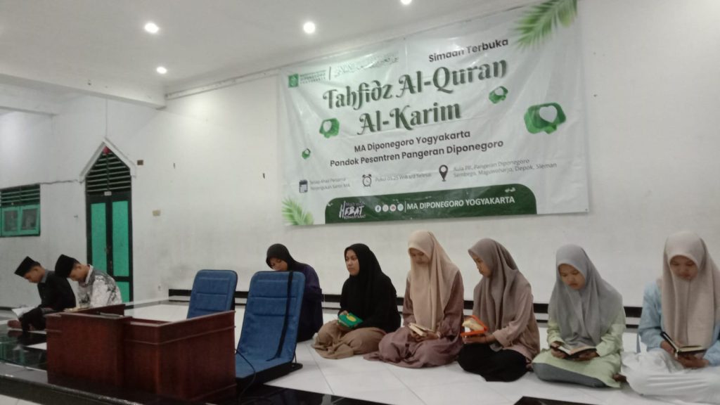Ruang-ruang membaca dan menghafalkan Al-Qurán difasilitasi simultan di madrasah demikian pula di pesantren. Untuk melatih dan meningkatkan kualitas bacaan tahfidz santri diberikan uji panggung pada simaan terbuka Tahfidz Al-Qurán Al-Karim di setiap pekan pertama Pengajian Ahad Pagi Pondok Pesantren Pangeran Diponegoro Sembego Maguwoharjo.